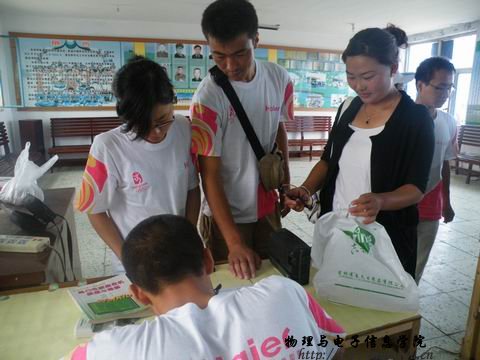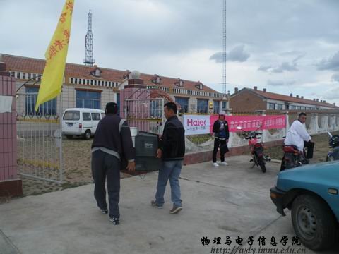 7月23日经过一夜的休息队员们已经完全逝去了旅途的疲惫,上午8:30左右,正式投入到一天的工作中。由于吉林郭勒镇上的村子分布较分散,在队员们在准备工作做好后并没有牧民送来电器,直到9:00以后才有村民骑着摩托开着汽车陆陆续续将出故障的家电送来。