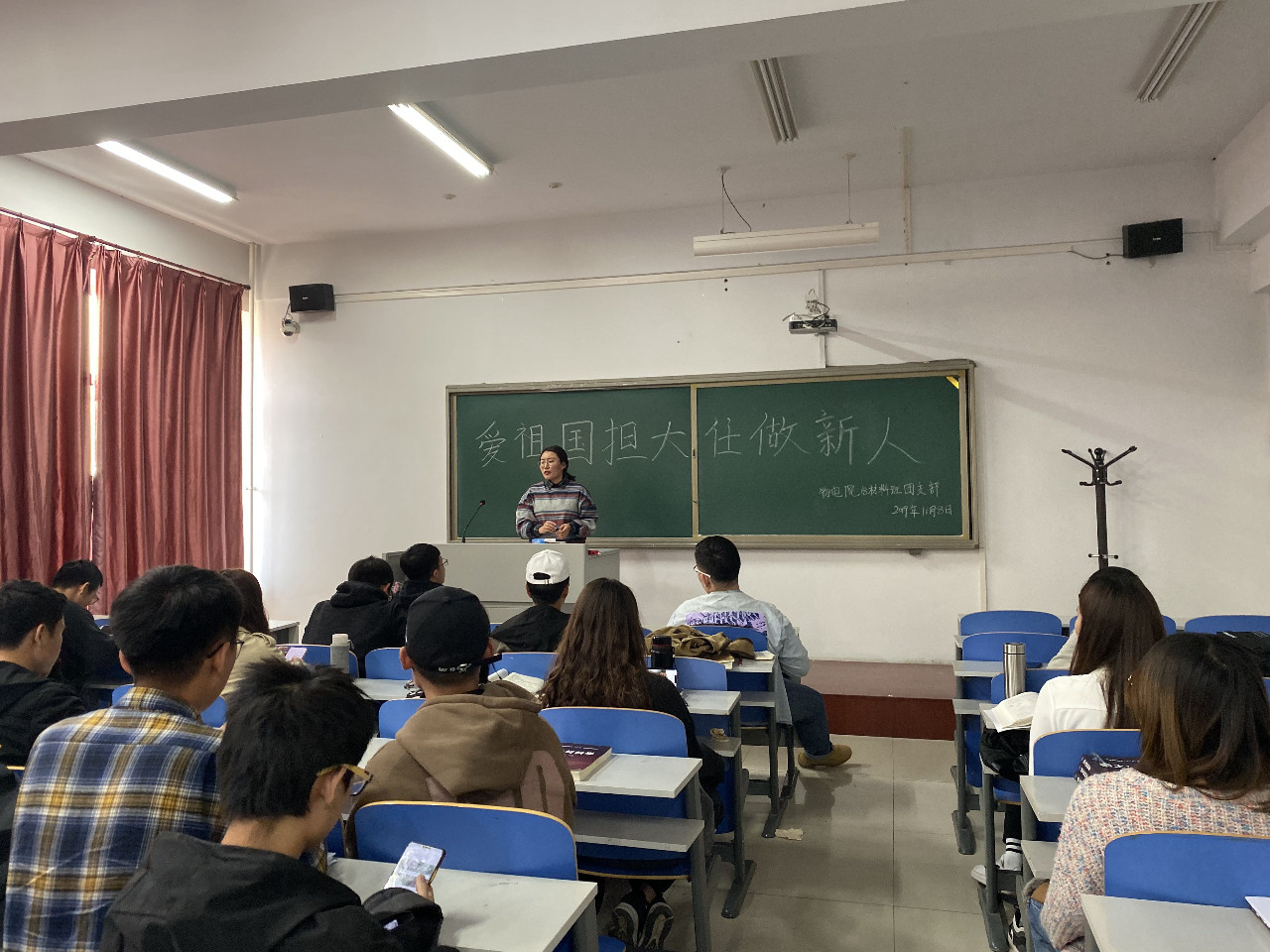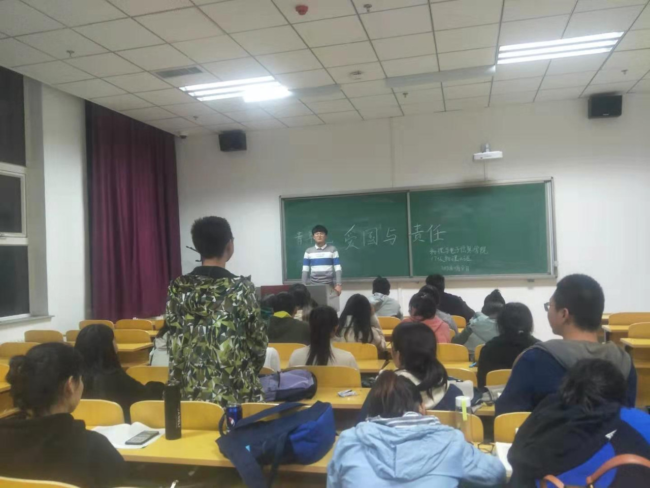各班级以演讲、辩论赛、观影、讨论会等形式召开本次团日活动,共同抒发新时代新青年的担当与责任。活动上,同学们纷纷表示,当代大学生要怀揣对祖国的热爱与热情,关心国家大事,国家历史,明白当代青年应该肩负的时代使命。活动末尾,各班级团支部书记做出总结,认为作为当代大学生,要热爱伟大祖国、要担当时代责任、要勇于砥砺奋斗,共同谱写新时代新篇章。