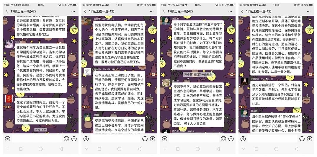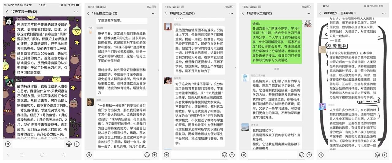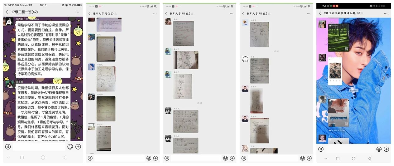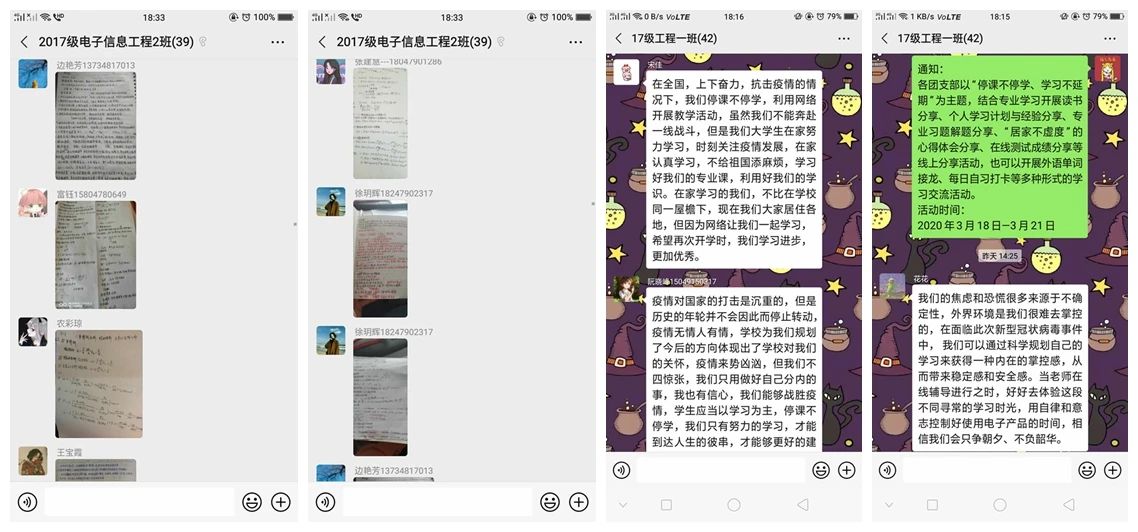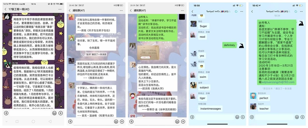 内已按计划逐步展开网络教学,利用网络平台为学生提供丰富的学习资源。为进一步激励学生把握好时间,合理有效安排学习计划,各团支部以“停课不停学、学习不延期”为主题,召开线上团日活动,形式多样,得到学生及老师们的热烈响应。