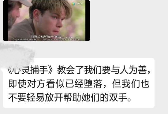 一部电影,一生感动。活动期间,为维护学生疫情期间心理健康,学院陆续开展了以“敬畏生命,健康第一,不负韶华,砥砺前行”为主题的观影鉴赏活动,分享几部治愈系电影,与同学们在线上进行观影感受、交流,给宅在家里上课的学生们带来情感上的共鸣。