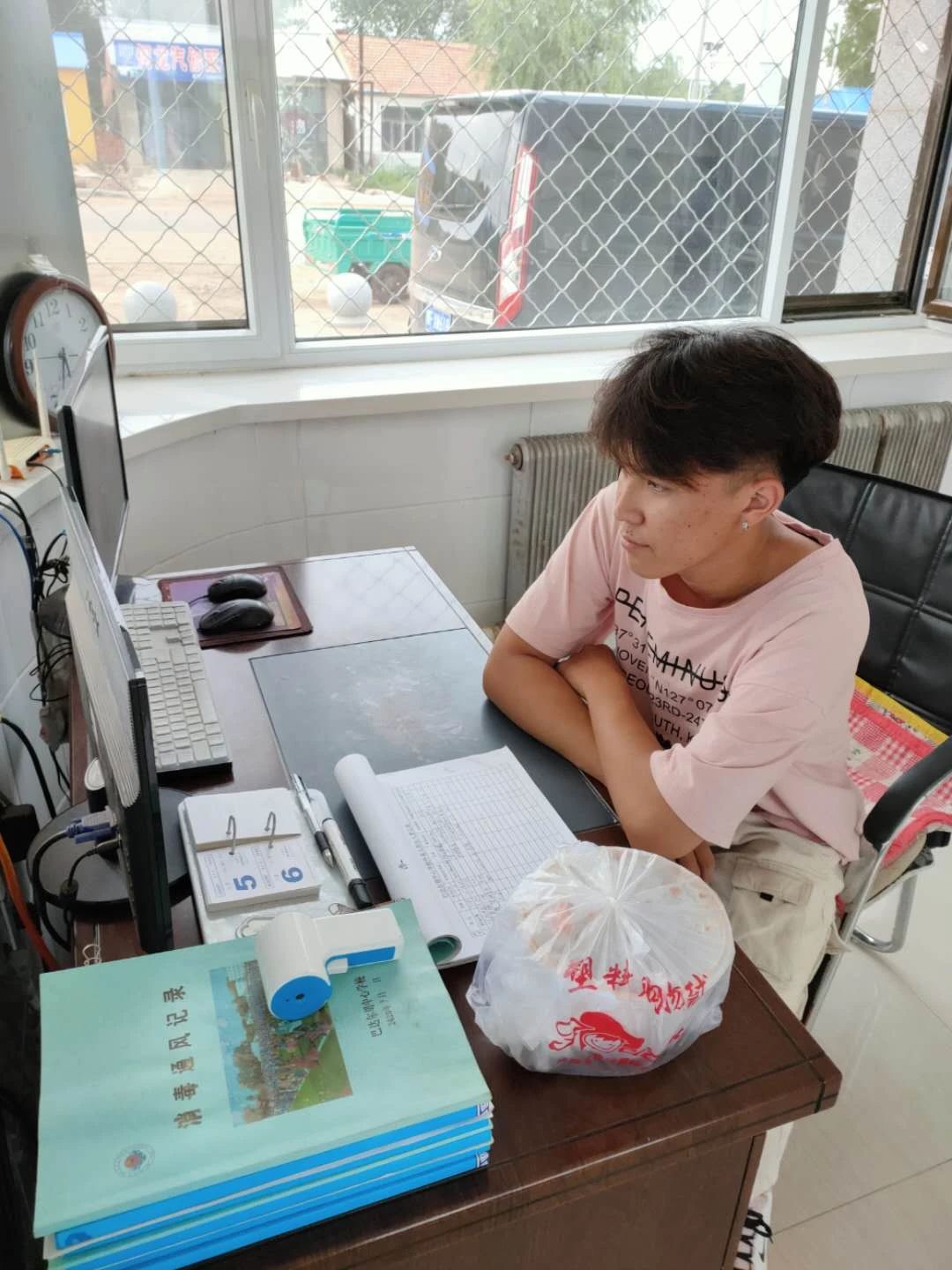 在接到学院通知的返家乡志愿活动后,19级电子信息工程二班王朝乐门同学第一时间想到曾经就读的小学——扎赉特旗巴达尔胡中心校。六年前在那里上学,现在他已经是一名大学生了,应当为母校做一些贡献,因此他决定到母校的门卫室进行志愿服务。