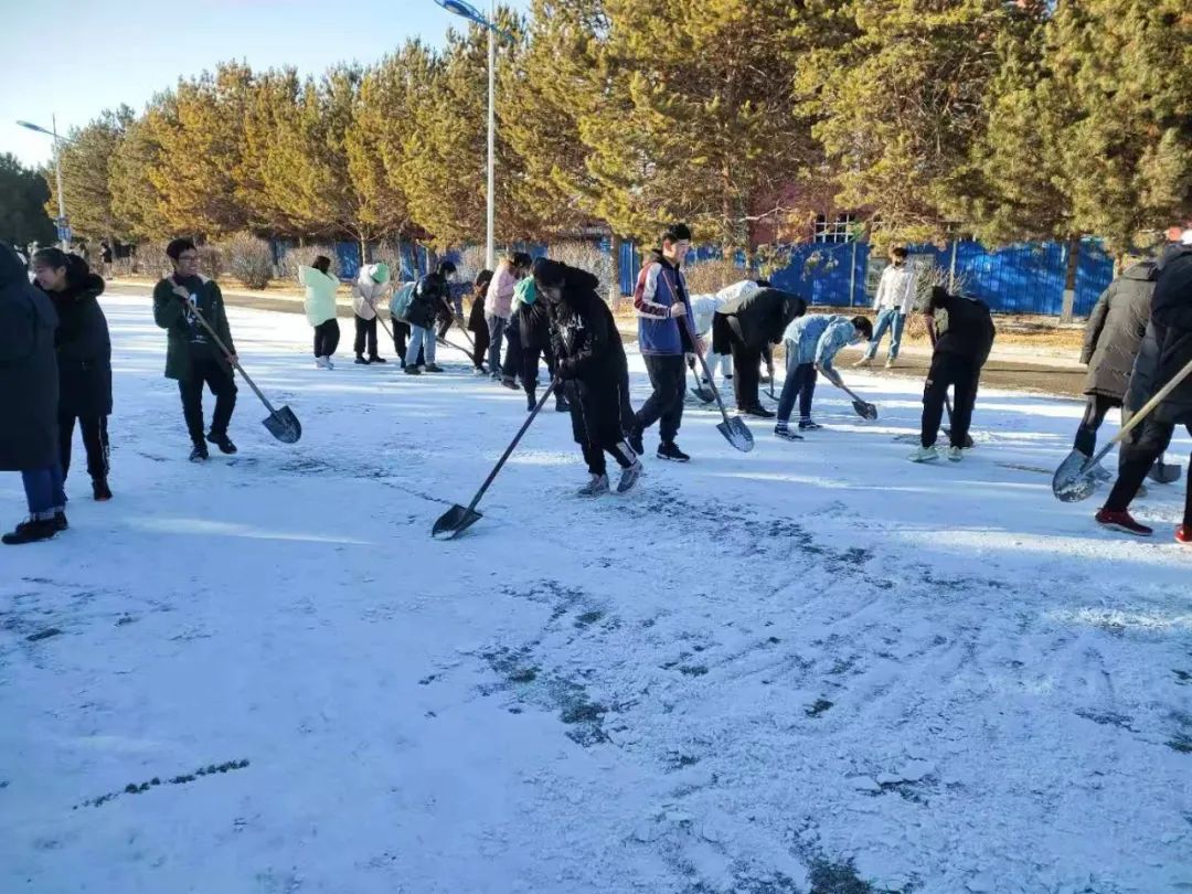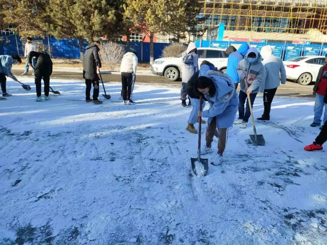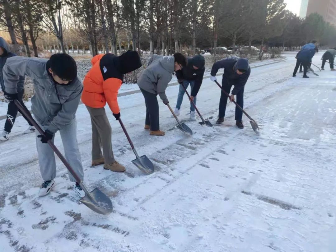 20级全体本科生进行第一学期铲雪除冰劳动教育实践活动。