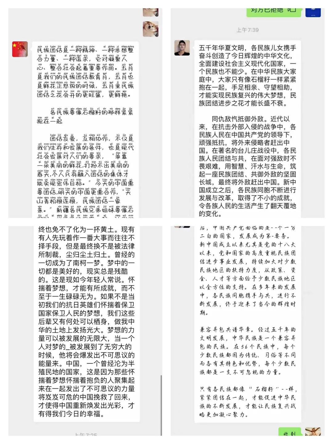 “文化篇”让物电学子深深明白各族儿女携手奋斗、共创今日辉煌中华文化的艰辛和不易;明白全面建设社会主义现代化国家,一个民族也不能少;明白在中华民族这个大家庭中,各民族只有像石榴籽一样紧紧抱在一起,手足相亲、守望相助,实现民族复兴的伟大梦想,才能让民族团结进步之花长盛不衰,薪火相传!