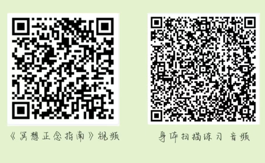 下面我们为大家推荐了正念冥想的音视频资源,大家可以通过扫描下方二维码进行练习。