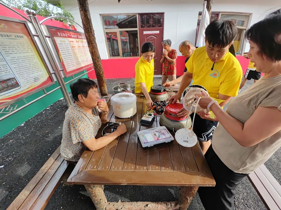 大学生志愿者们热情接待前来维修家电的村民,在维修电器的同时向村民们普及家电使用、维护和维修等小知识。义务维修活动的开展,不仅为居民免费维修了各类电器,为村民带去实实在在的便民服务,也提升了大学生志愿者的专业技术实践能力和回报社会、服务群众的积极性和主动性。