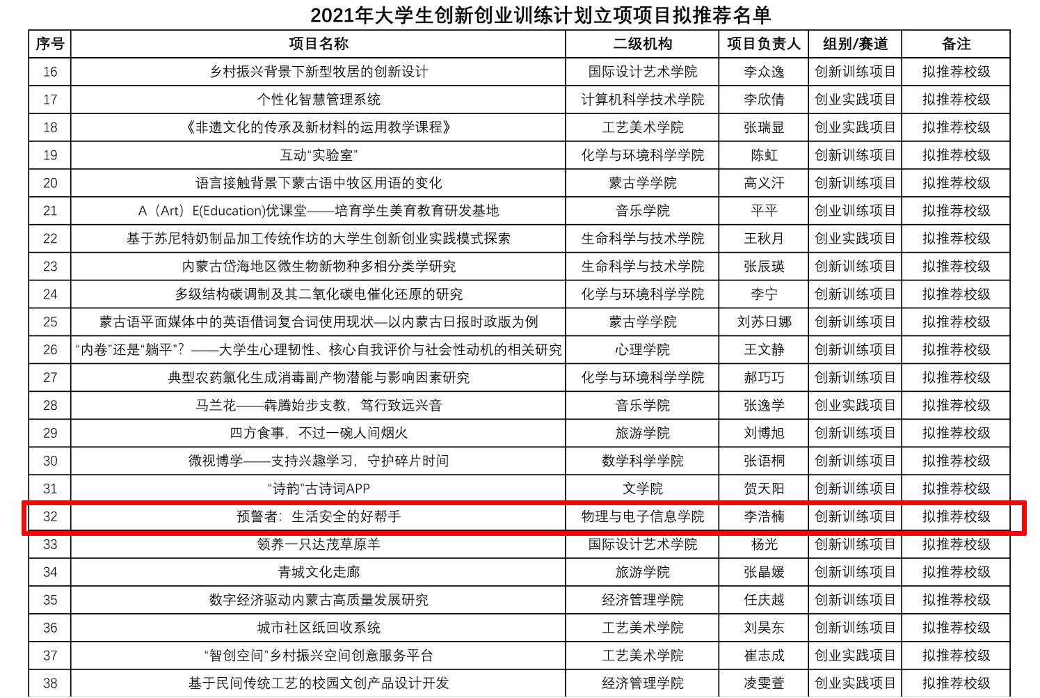 为深入贯彻全国教育大会精神,落实《国务院办公厅关于深化高等学校创新创业教育改革的实施意见》(国办发〔2015〕36号),按照《内蒙古自治区教育厅关于启动自治区级大学生创新创业训练计划项目的通知》(内教高函〔2016〕10号)要求和自治区级大学生创新创业训练计划工作安排,球吧网
