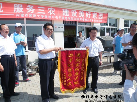 7月20日上午,我校党委陈中永书记一行在集宁区领导及球吧网 领导陪同下赴乌兰察布市集宁区马莲渠乡慰问了学院暑期“三下乡”社会实践活动志愿者,并送来了慰问金和慰问品。集宁区白海子镇镇党委书记代表全体村民为服务队送来写着“暑期实践展才能、办事到家为人民”锦旗,马莲渠乡三成局村民高大爷也送来感谢信感谢志愿者们的周到服务。