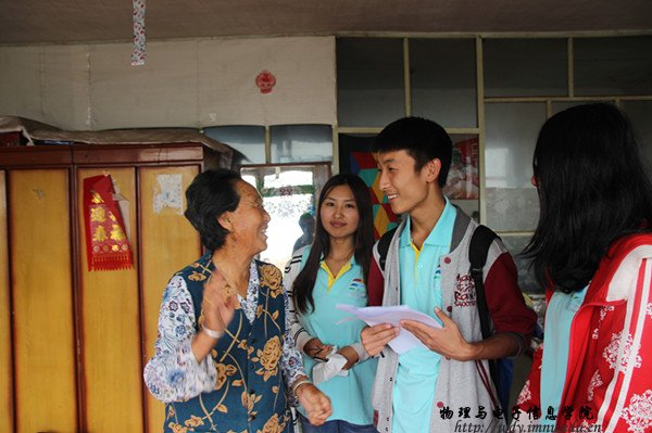 学生“三下乡”服务队组织进行回访活动,对村里我们进行过电器维修的用户做了再一次走访慰问。同时,我们还为乡亲们带去了小礼物。礼轻情义重,乡亲们接过小礼物的时候,他们憨憨的笑着,眼中却早已饱含深情泪花。看到乡亲们用着我们修好的电饭煲做饭,用着我们修好的电视机看着电视剧,用着我们修好的收音听新闻,一种自豪感不禁地在我们内心涌动。“大学生就是大学生;娃娃的学没白上;感谢感谢;为内师大物电院点赞……”,这些从乡亲们口中说出来必须仔细听才能听懂的当地话,让我们觉得没有白来,我们用热情和知识为乡亲们带来了实打实的帮助。我们要为自己在“三下乡”这个第二课堂中的表现打满分。