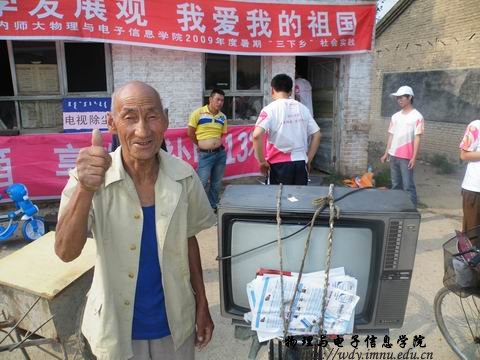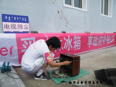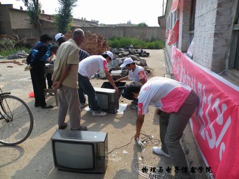 第一站我们来到了讨卜齐村,这里的村民特别热情,短短的一上午时间内我们收到59个大大小小的家电。闲谈时李喜胜大爷对我们说:“我们这里没有家电维修铺,小问题都解决不了,大问题就更不用说了。”当我们问到希望我们的服务再有那些改进时,大爷笑着说:“很好!很好!希望你们常来就好了。”董爱毛大娘拿着修好的电炒锅对我们激动的说:“娃娃们辛苦了!大中午的,要不去家里吃点饭哇!”看着村们真的从我们的服务中得到了实惠,我们心里也乐开了花。