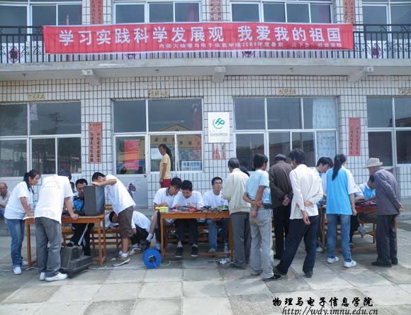 2009年暑期大学生“三下乡”社会实践活动从7月18日开始到8月20日结束开展为期一个多月的送科技下乡活动。本次实践活动将在呼市周边农村、锡林郭勒盟西乌旗周边苏木进行。活动情况将在学院网站做详细报道。