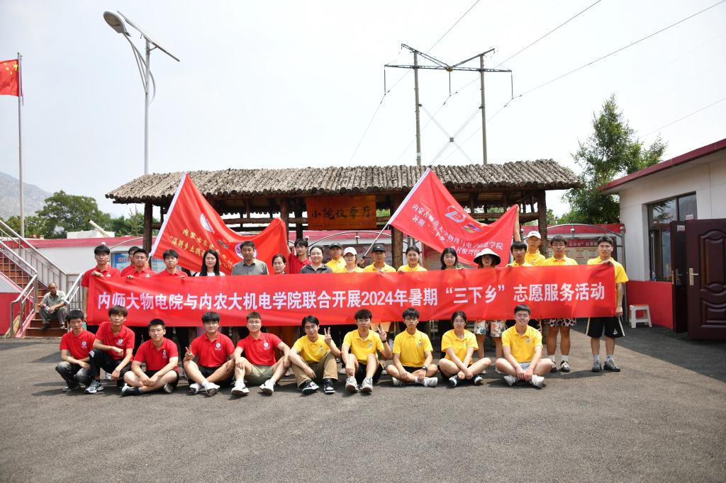 “红石榴”乡村振兴促进团师生和内农大机电院师生前往土右旗苏波盖乡美岱桥村、美岱召镇沙图沟村开展志愿服务活动,帮助村民们修理电风扇、热水壶、电饭锅、洗衣机、电冰箱、电视机等家电,为群众照相、换灯泡、普及安全用电常识。