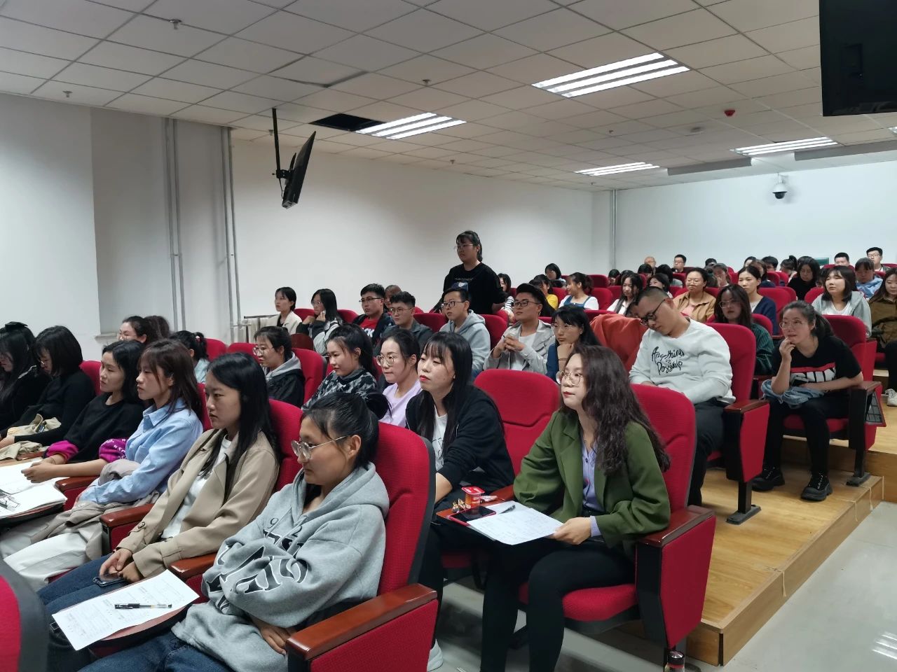 党委副书记兼副院长曹永军教授到场并讲话。教育硕士研究生,大三、大四本科师范生和教师教育团队教师共150余人聆听,讲座由物理系副主任孙咏萍主持。
