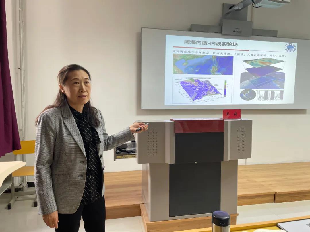 学生学习层次深度和侧重点,生动形象地讲述了海洋内波的测量方法。同时,她旁征博引,由测量方法给予同学们许多学习上的感悟,开拓了到场学生与老师的研究想法。会后,王晶教授与现场师生进行了互动交流。