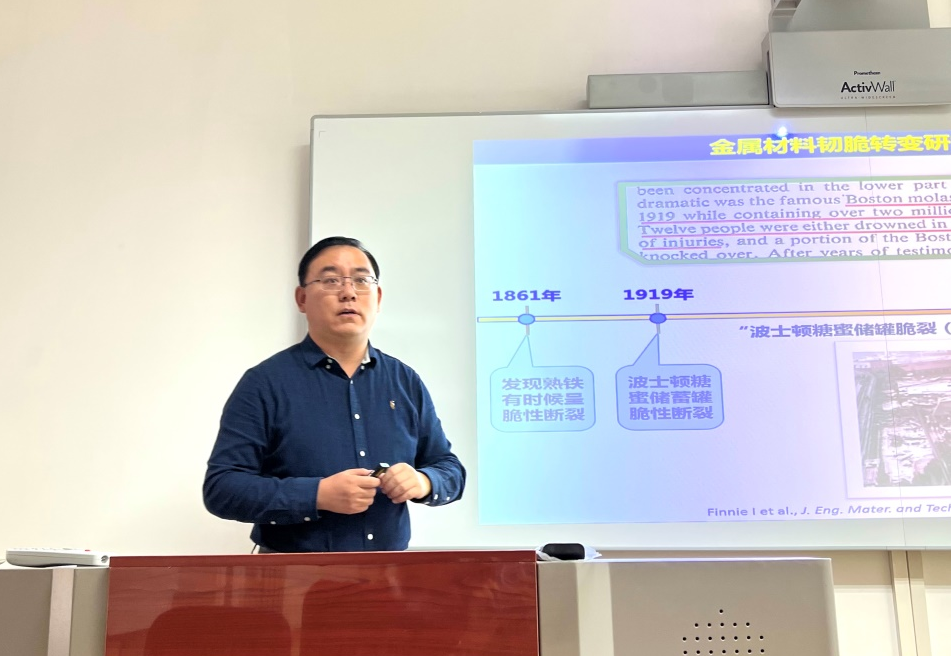 时空大讲堂,以《懒惰的“小螺搬运工”与金属低温失效——金属材料韧脆转变之谜》为题做了一场精彩报告。报告由学院副院长那日苏教授主持,学院相关专业老师及研究生到场聆听。