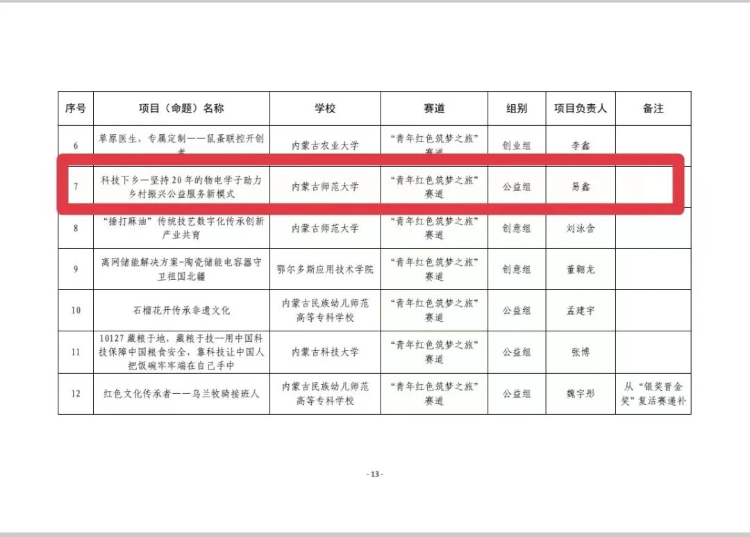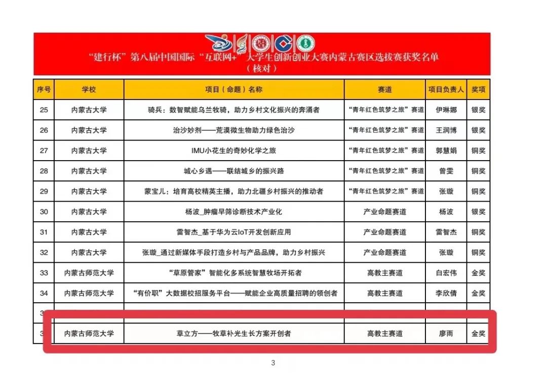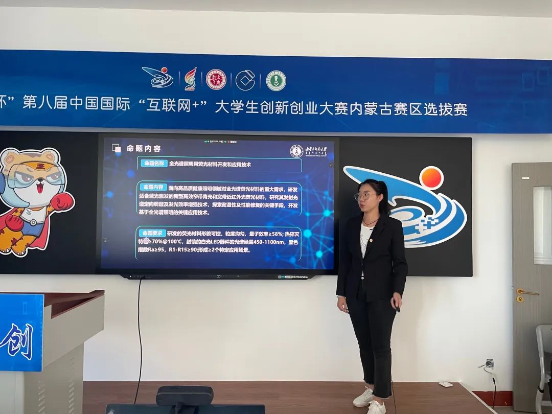 在8月11日刚刚落幕的第八届中国国际“互联网+”大学生创新创业大赛内蒙古赛区选拔赛中,球吧网 《草立方——牧草补光生长方案开创者》《科技下乡---坚持20年的物电学子助力乡村振兴公益服务新模式》《全光谱照明用荧光材料开发和应用技术》三个参赛项目分别斩获高教主赛道、“青年红色筑梦之旅”赛道、产业命题赛道金奖!《扁鹊:非接触人体呼吸检测专家》获得高教主赛道铜奖。其中《科技下乡---坚持20年的物电学子助力乡村振兴公益服务新模式》《全光谱照明用荧光材料开发和应用技术》两个项目获得参加国赛资格。这是球吧网 在“互联网+”赛事取得的又一历史性突破。