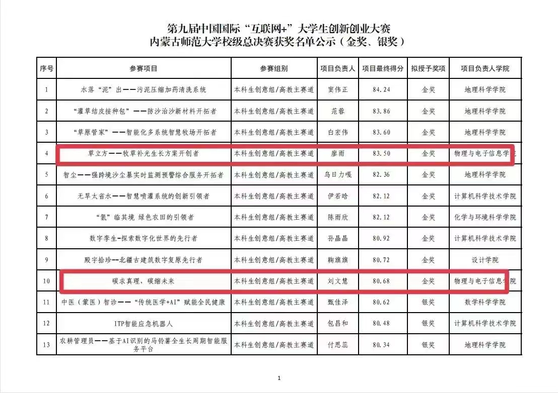 摘得了三金四银的好成绩,其中“草立方——牧草补光生长方案开拓者”、“碳求真理,碳缩未来”、“'毕力'铜锌践行'碳中和'——新型无机薄膜太阳能电池的应用”获得高教主赛道本科生、研究生创意组金奖,“防'冻'未然——冻土成分检测先行者”、“碳立方——葵花籽壳衍生钠离子电池硬碳负极材料”获得高教主赛道本科生创意组银奖,“'红石榴'科技下乡——坚持21年的助力农业农村现代化公益服务”、“星火燎原——科普教育助力乡村振兴”取得了青年红色筑梦之旅公益组银奖。