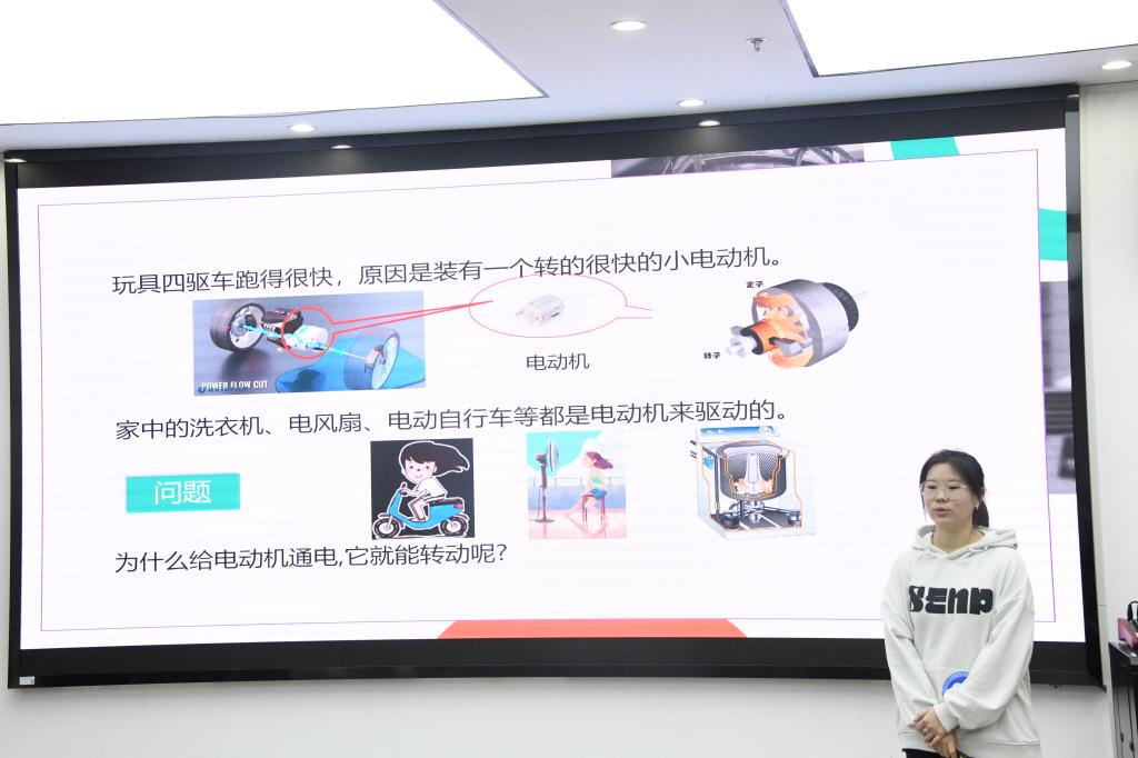 随后,主持人正式宣布比赛开始,现场气氛瞬间被点燃。二十二名选手们依次上台,他们围绕物理与电子信息相关的科普小知识展开讲解,巧妙地运用教具、视频等多媒体手段,将复杂的科学原理以直观易懂的方式呈现给评委及观众。评委们对选手们的表现进行了精彩点评,既肯定了他们的优点,也提出了改进意见。